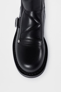 Lean Ankle Boots - Black - Grained Shiny Calfskin - Front Buckled Quilted Leather wrap - Front Signature Rivet - Side Zip Closure - Rubber Sole - 100% Cow Leather - Made in Italy. Ann Demeulemeester shoes embody the essence of luxury and comfort. The generously wide fit is a design choice aimed at ensuring a comfortable wear. For those who prefer a snugger fit, we recommend using an insole. Crafted from the highest quality leather, it is natural for the shoes to feel stiff initially. By wearing and walking in them, they will perfectly mold to the shape of your feet, offering unparalleled comfort. The fit of this item is comfort. Consider to purchase your usual size. Care To maintain the beauty and integrity of your purchase, we recommend treating it with care. Simple maintenance practices, such as gentle washing and proper storage, can effectively preserve the longevity of your favorites. We encourage you to refer to the care instructions included with each item, designed to help you keep your purchase in top condition. Design Our dedication to excellence extends beyond materials; it encompasses the artistry and craftsmanship illustrated in every piece we create.