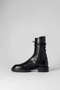 Women's Louise Boots - Black - Side zip closure - Black laces - Round toe - 100% Calf Leather - Made In Italy