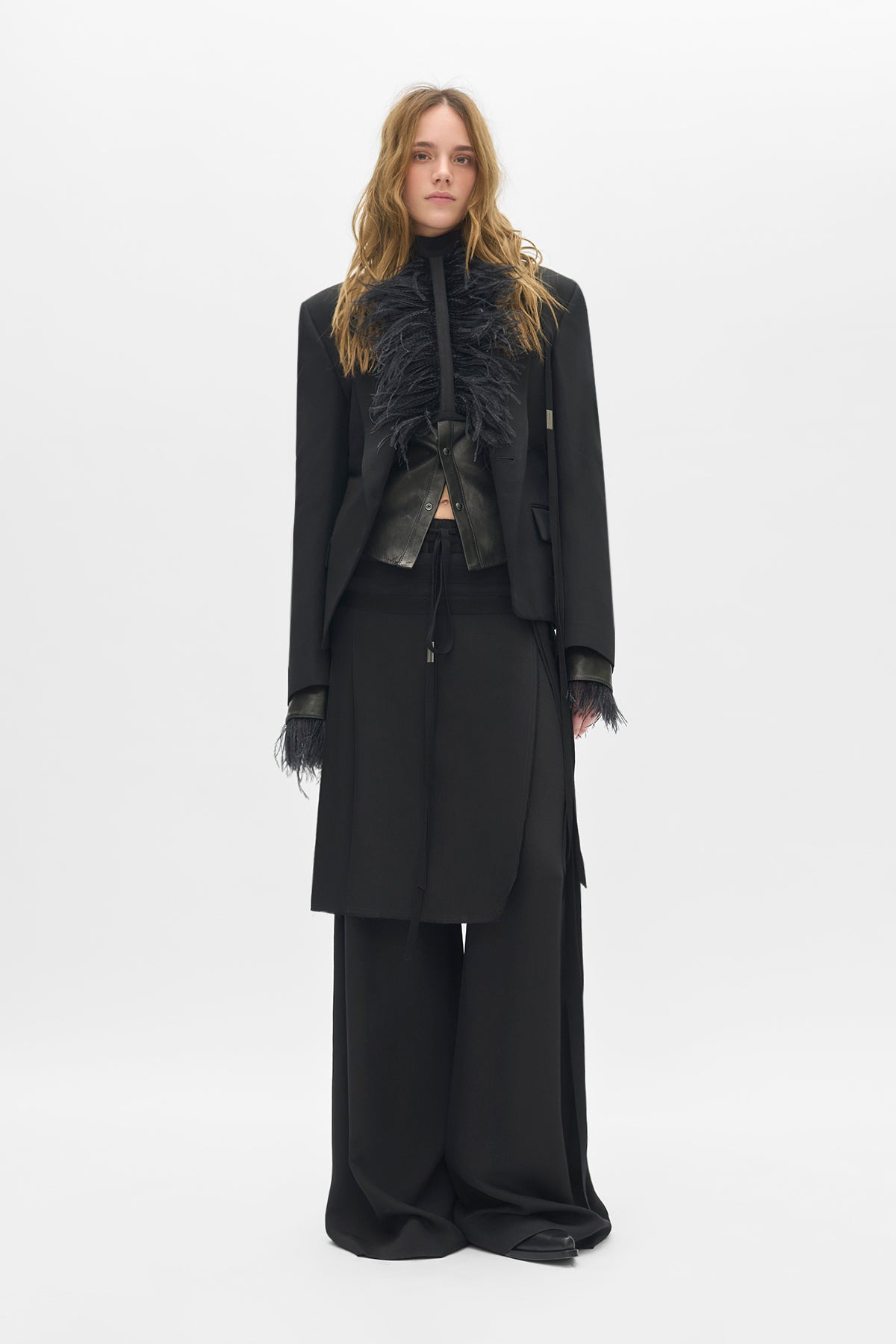 Marke Lounge Pants - Black - Viscose Wool Gabardine - Relaxed Comfort Fit - Integrated Belted Apron Detail - Elasticated Waistband - Back Pocket - 79% Viscose, 21% Wool - Made in Italy Model wears italian size S Care To maintain the beauty and integrity of your purchase, we recommend treating it with care. Simple maintenance practices, such as gentle washing and proper storage, can effectively preserve the longevity of your favorites. We encourage you to refer to the care instructions included with each item, designed to help you keep your purchase in top condition. Design Our dedication to excellence extends beyond materials; it encompasses the artistry and craftsmanship illustrated in every piece we create.