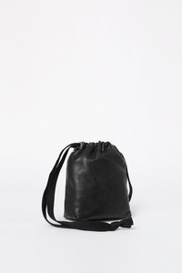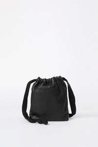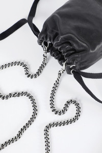 Marlise Soft Small Hand Bag - Black - Front Embossed Logo -Removable Link Chain - Shoulder Strap - Grograin Drawstring Closure - 100% Lamb Leather - Made in Italy