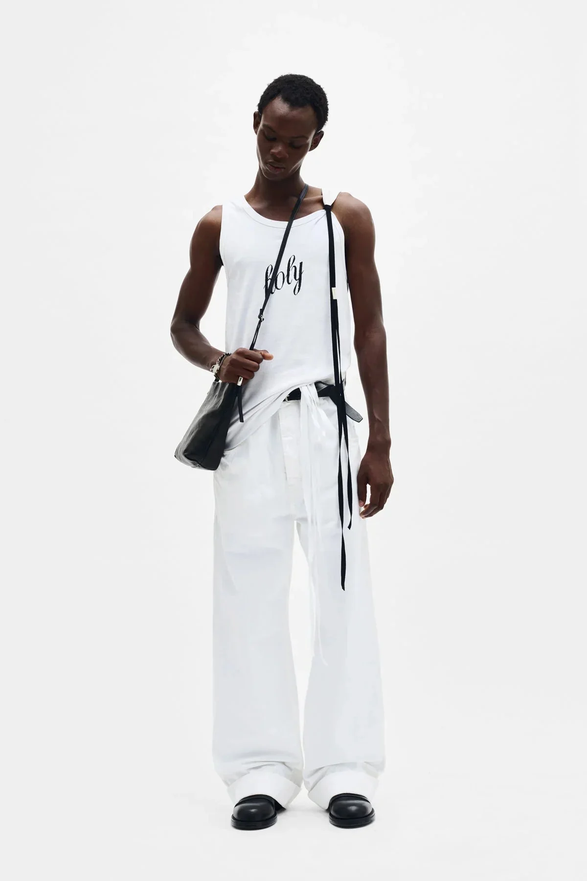 Michael 5 Pocket High Comfort Trousers - White - Belt Holes - Removable Signature Grosgrain Ribbon - Button Closure - 5 pockets - Turn-Up Hems - Wide Leg - Baggy Fit - Floor Length - 100% Cotton - Made in Italy Model wears italian size 46 The fit of this item is oversize. If you prefer a narrow fit, consider purchasing this item two size down from your usual size Care To maintain the beauty and integrity of your purchase, we recommend treating it with care. Simple maintenance practices, such as gentle washing and proper storage, can effectively preserve the longevity of your favorites. We encourage you to refer to the care instructions included with each item, designed to help you keep your purchase in top condition. Design Our dedication to excellence extends beyond materials; it encompasses the artistry and craftsmanship illustrated in every piece we create.