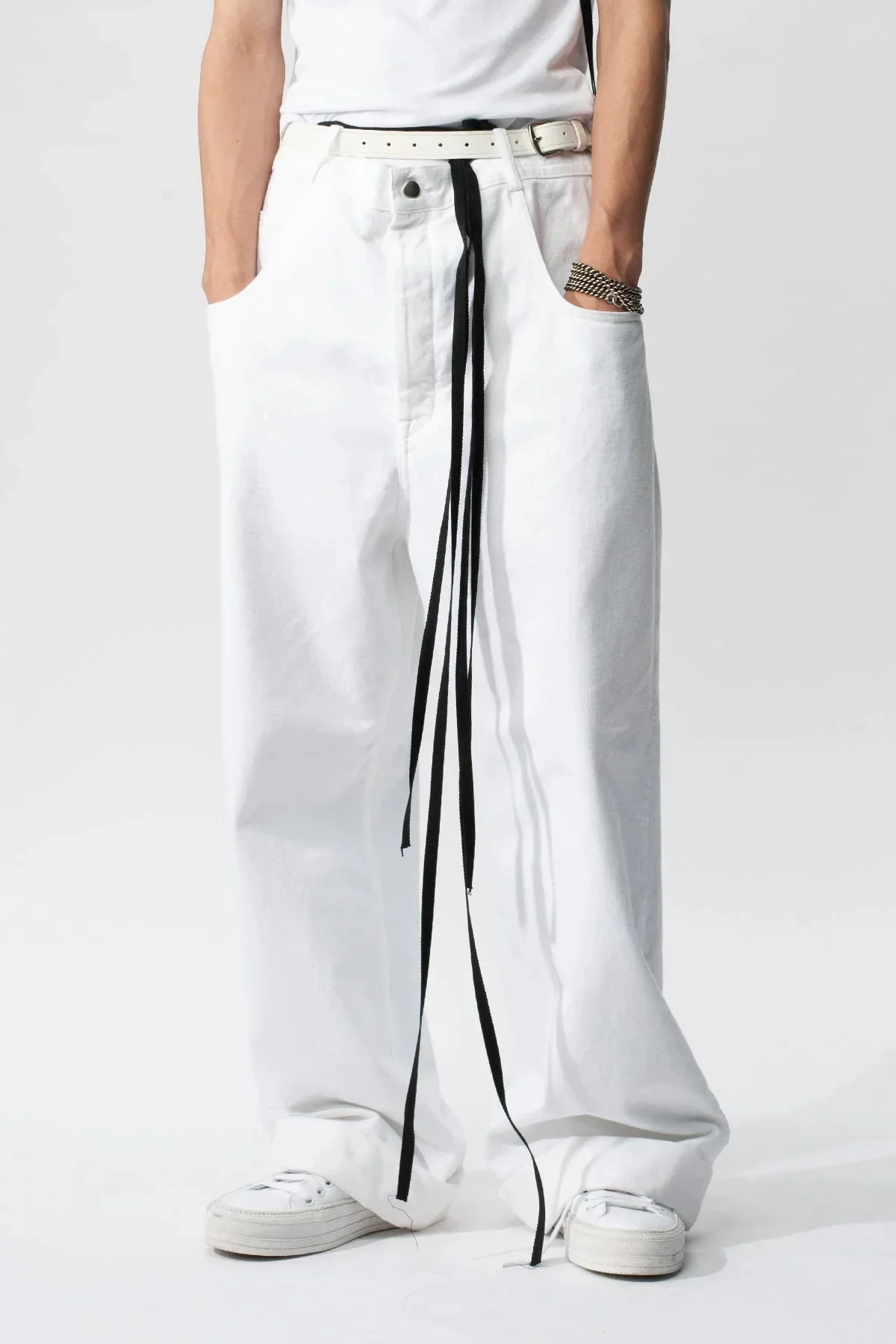 Men's Five Pockets high comfort trousers- White- Over Size Fit- Side pockets - Back pockets- Denim- 100% Cotton- Made in Italy Model wears Italian size 48 Height: 188 cm Waist: 73 cm Hips: 86 cm Shoes: 45 cm