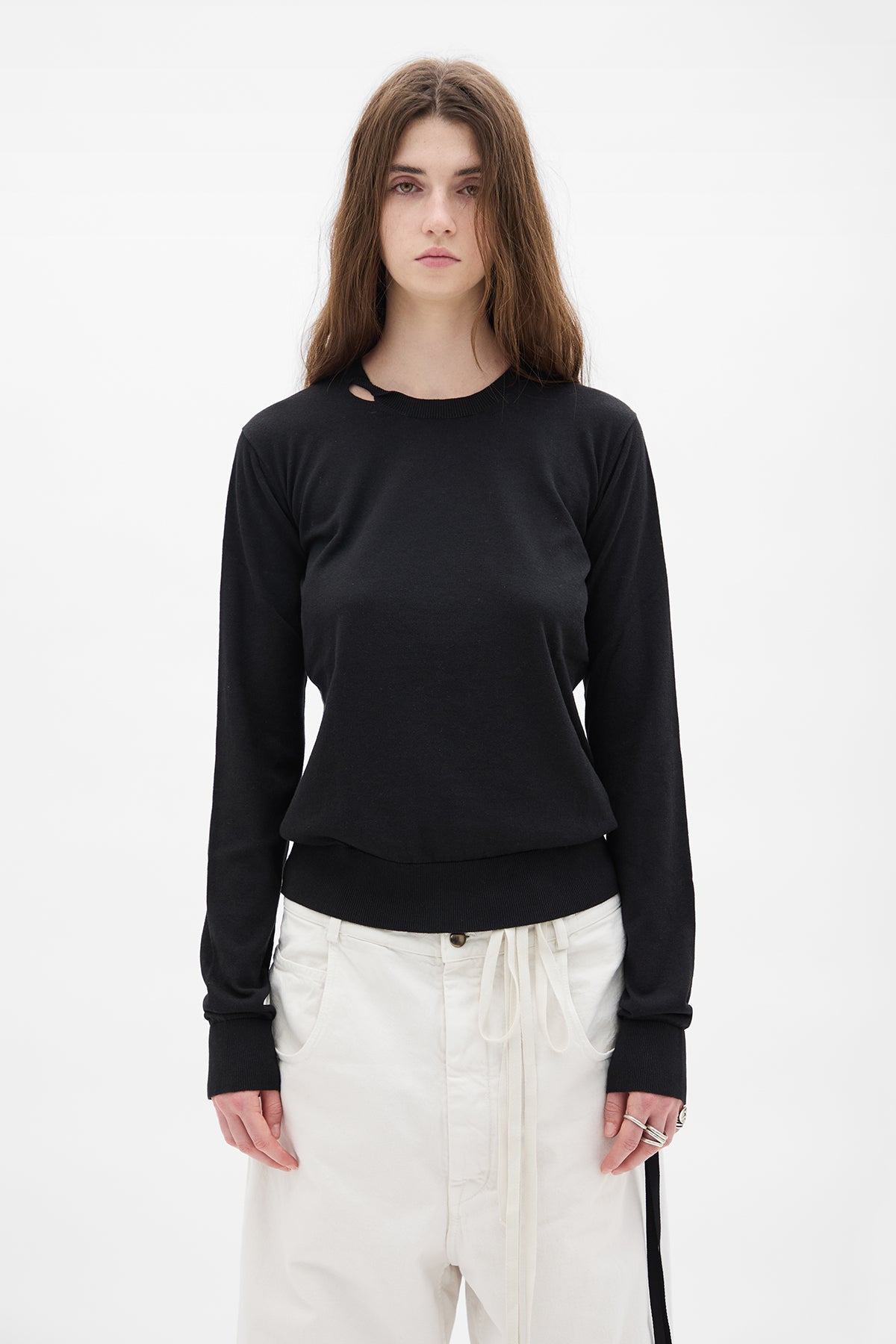 Nemi Crew Neck Sweater - Black - Twisted Neckline Detail - 50% Cotton, 30% Cashmere, 20% Silk - Made in Italy Model wears italian size S Care To maintain the beauty and integrity of your purchase, we recommend treating it with care. Simple maintenance practices, such as gentle washing and proper storage, can effectively preserve the longevity of your favorites. We encourage you to refer to the care instructions included with each item, designed to help you keep your purchase in top condition. Design Our dedication to excellence extends beyond materials; it encompasses the artistry and craftsmanship illustrated in every piece we create.