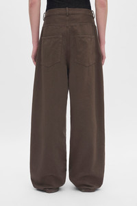 Olan 5 Pocket High-Comfort Jeans - Brown - Washed Denim - Belt Holes - Removable Ribbon With Engraved Logo Plaque - Button Closure - 5 Pockets - Baggy fit - 100% Cotton - Made in Italy The fit of this item is oversize. If you prefer a narrow fit, consider purchasing this item one size down from your usual size. Model wears italian size 46 Height: 186 cm Waist: 68 cm Hips: 88 cm Care To maintain the beauty and integrity of your purchase, we recommend treating it with care. Simple maintenance practices, such as gentle washing and proper storage, can effectively preserve the longevity of your favorites. We encourage you to refer to the care instructions included with each item, designed to help you keep your purchase in top condition. Design Our dedication to excellence extends beyond materials; it encompasses the artistry and craftsmanship illustrated in every piece we create.