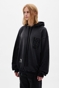 Ollie High-Comfort Hoodie With Printed Patches - Black - Vintage Cotton Jersey -Distressed Details - Hood With Drawstrings - Front Printed Graphic Patches - Ribbed Hem And Cuffs - Loose Fit - 100% Cotton - Made in Portugal Model wears italian size M Care To maintain the beauty and integrity of your purchase, we recommend treating it with care. Simple maintenance practices, such as gentle washing and proper storage, can effectively preserve the longevity of your favorites. We encourage you to refer to the care instructions included with each item, designed to help you keep your purchase in top condition. Design Our dedication to excellence extends beyond materials; it encompasses the artistry and craftsmanship illustrated in every piece we create.