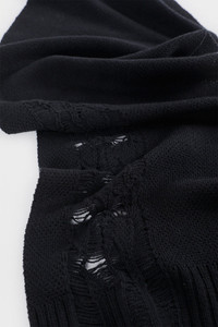 Pal Destroyed Seed Stitch Scarf - Black - Destroyed Seed Stitch Knit - Ribbed Ends - 30x200 cm - 100% Wool - Made in Italy