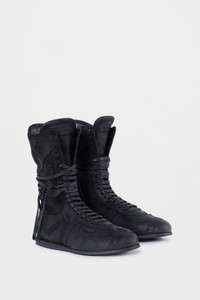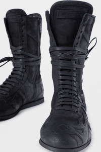 Palne High-Top Boxing Sneakers - Black - Calf Suede - Western Graphic Overlays - Back Signature Rivet - Tongue with Suede Logo Tag - Lace-Up Closure - Side Zip Closure - Rubber Sole - 100% Calf Leather - Made in Italy The fit of this item is slim. Consider to purchase your usual size. Care To maintain the beauty and integrity of your purchase, we recommend treating it with care. Simple maintenance practices, such as gentle washing and proper storage, can effectively preserve the longevity of your favorites. We encourage you to refer to the care instructions included with each item, designed to help you keep your purchase in top condition. Design Our dedication to excellence extends beyond materials; it encompasses the artistry and craftsmanship illustrated in every piece we create.