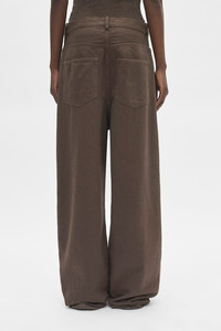 Polly 5 Pocket High Comfort Jeans - Brown - Belt Holes- Button Closure - Removable Signature Grosgrain Belt- 5 Pockets - Wide Leg - Floor Length - 100% Cotton - Made in Italy The fit of this item is over. It can be worn as a regular fit using the internal button adjustment Model wears italian size 40 Care To maintain the beauty and integrity of your purchase, we recommend treating it with care. Simple maintenance practices, such as gentle washing and proper storage, can effectively preserve the longevity of your favorites. We encourage you to refer to the care instructions included with each item, designed to help you keep your purchase in top condition. Design Our dedication to excellence extends beyond materials; it encompasses the artistry and craftsmanship illustrated in every piece we create.