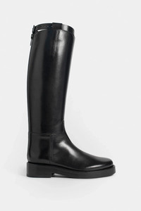 Men's black Stan riding boots- Black- Heel: 3 cm- 100% Cow Leather- Made in Italy. Ann Demeulemeester shoes embody the essence of luxury and comfort. The generously wide fit is a design choice aimed at ensuring a comfortable wear. For those who prefer a snugger fit, we recommend using an insole. Crafted from the highest quality leather, it is natural for the shoes to feel stiff initially. By wearing and walking in them, they will perfectly mold to the shape of your feet, offering unparalleled comfort. The fit of this item is regular. Consider to purchase your usual size.