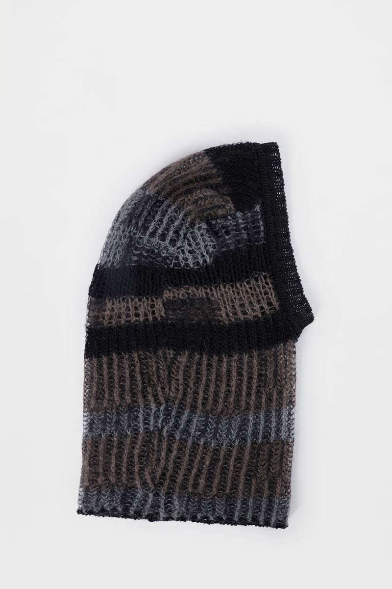 Vali Balaclava - Black/Grey - Brushed Mohair Silk Jacquard Knit - Cut-Out Front - Ribbed Edges - 70% Wool Mohair, 30% Silk - Made in Italy