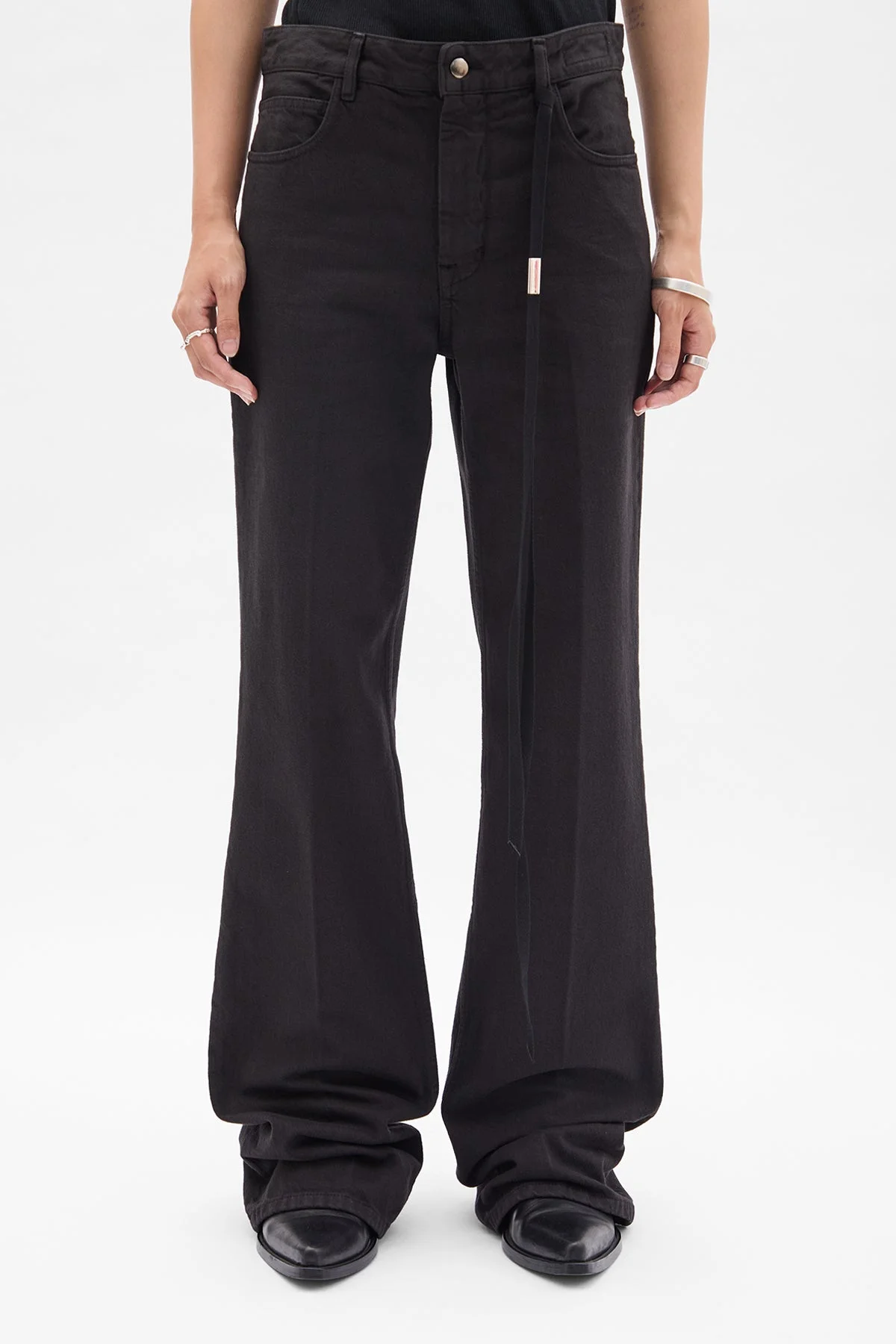 Vive 5-Pockets Straight Leg Trousers - Black - Soft Cotton - Belt Loops - Button and Zip Closure - Five-Pocket Design - Wide Leg - Straight Fit - 100% Cotton - Made in Italy Model wears size 27 Care To maintain the beauty and integrity of your purchase, we recommend treating it with care. Simple maintenance practices, such as gentle washing and proper storage, can effectively preserve the longevity of your favorites. We encourage you to refer to the care instructions included with each item, designed to help you keep your purchase in top condition. Design Our dedication to excellence extends beyond materials; it encompasses the artistry and craftsmanship illustrated in every piece we create.