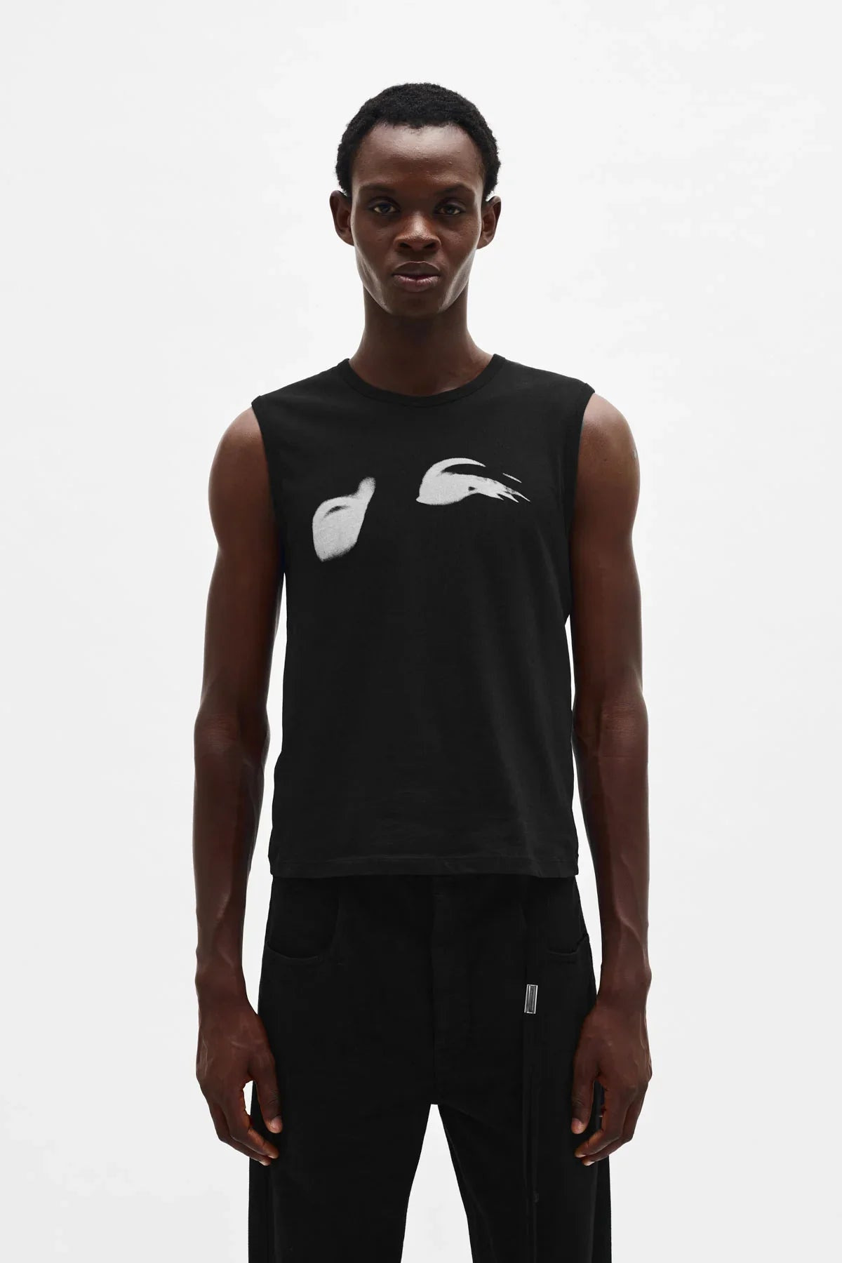 Ysewijn ''Smokey Eyes'' Sleeveless Top - Black - Round Neck - Front Smokey Eyes Graphic Print - Sleeveless - Racer Back - 100% Cotton - Made in Portugal Model wears italian size M The fit of this item is narrow. Consider this information when you select the size. Care To maintain the beauty and integrity of your purchase, we recommend treating it with care. Simple maintenance practices, such as gentle washing and proper storage, can effectively preserve the longevity of your favorites. We encourage you to refer to the care instructions included with each item, designed to help you keep your purchase in top condition. Design Our dedication to excellence extends beyond materials; it encompasses the artistry and craftsmanship illustrated in every piece we create.