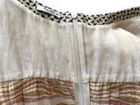 Miu Miu jacquard mini dress in pink, gold and beige. With a mix of woven motifs and colors, this dress display playful characteristic of Miu Miu. This dress was made in Italy SS 2008, and the dress with the same motif appeared in the 9th look of Runway SS 2008. Retail price around 1100 euro. This dress is in very good condition, with some yellowing on the inner part as a sign of use, and the washing label is starting to fade, the rest is perfect. Size IT 40 Bust 41 cm Waist 44 cm Length 83 cm Armpit hole 43 cm #miumiu #prada #runway #vintage