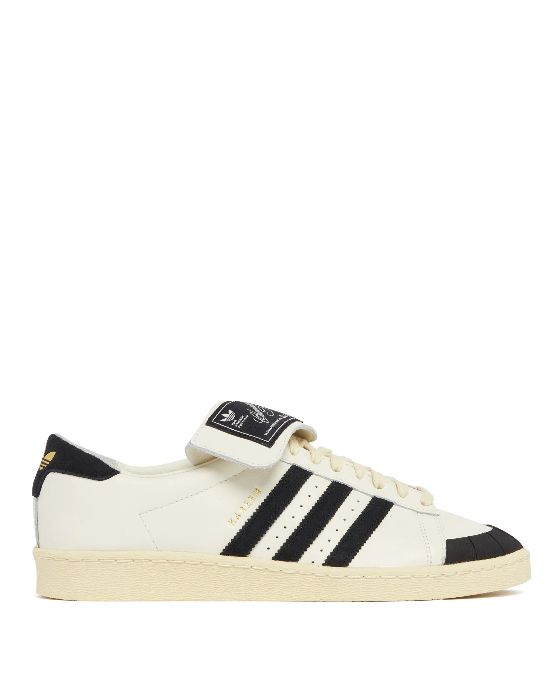 Adidas Originals x Willy Chavarria White Jabbar Low Sneakers. White leather upper, iconic contrasting side stripes, classic lace-up fastening, folded tongue with branded label. Rubber sole, rounded toe, regular fit. DETAILS Model: JP6107OFFWHITEBLACK Composition: Upper: 100% Leather; Sole: 100% Rubber Made in: Indonesia Season: FW25-26