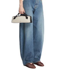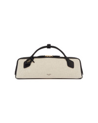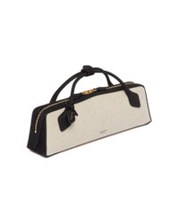 Alaia Beige and Black Le Teckel Clutch. Beige linen and cotton canvas, black leather, elongated silhouette, long tubular handles with decorative laces, double-zip closure, small removable mirror inside the pocket. Fully lined. Size (cm): 31X9X6 DETAILS Model: AA1S06026CA582999 Composition: 100% Fabric; Details: 100% Leather Made in: ITALY Season: FW25-26