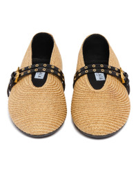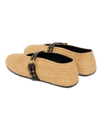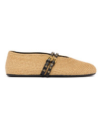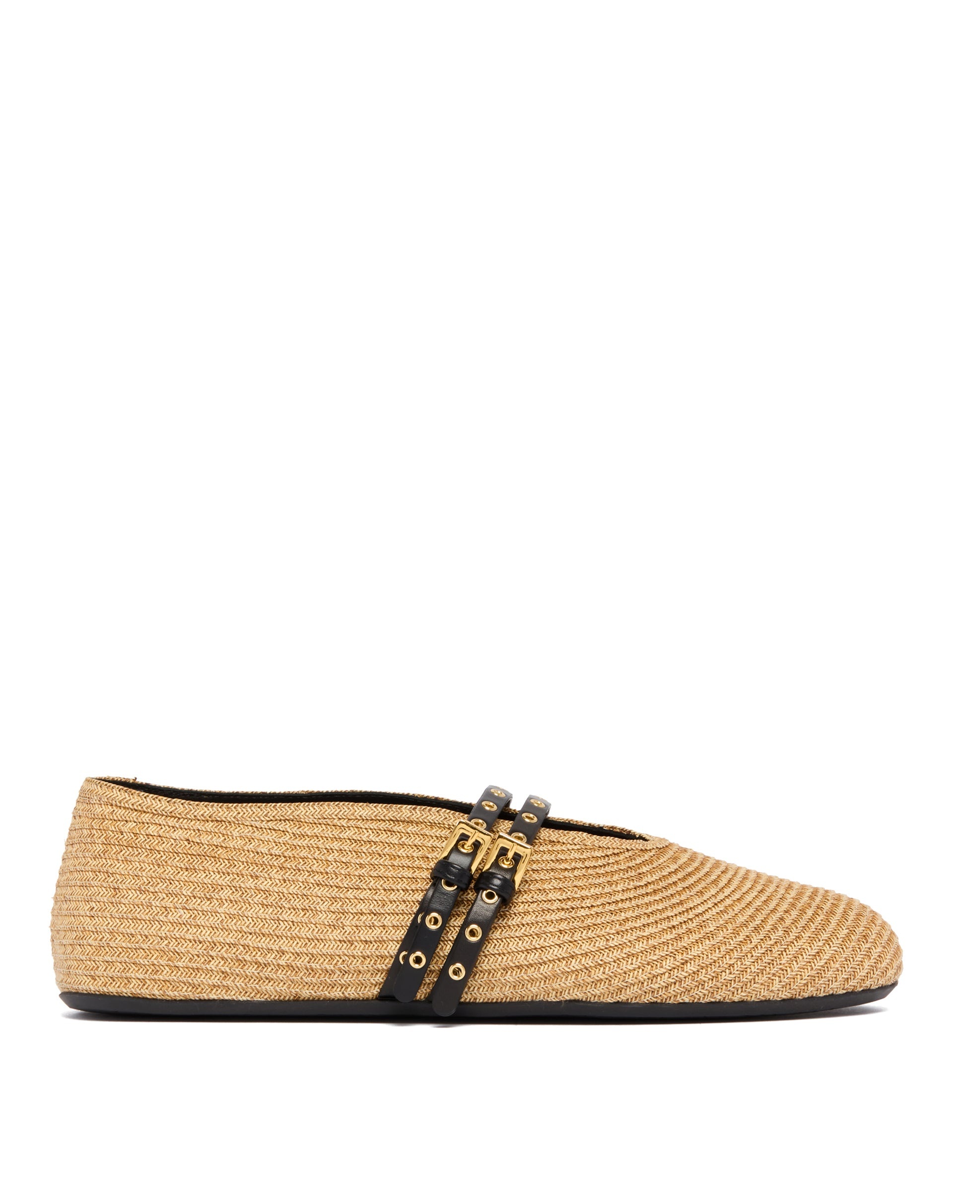 Alaia Beige Flat Ballet Flats. Beige upper made from paper raffia, double strap with leather eyelet detail, rounded toe, rubber sole, and calf leather lining. True to size. DETAILS Model: AA3A058TK036113 Composition: 100% Fabric; Detail: 50% Leather, 50% Brass; Sole: 100% Rubber Made in: ITALY Season: FW25-26