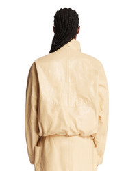 Alaia Beige Leather Jacket. Beige leather, long sleeves, high collar, concealed front zip fastening. Elasticated hem and cuffs, side pockets, relaxed fit. Vania is 179 cm and she is wearing size 36. DETAILS Model: AA9V1224L039CA16 Composition: 100% Leather Made in: ITALY Season: SS26