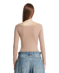 Beige Off-the-Shoulder Knit Bodysuit