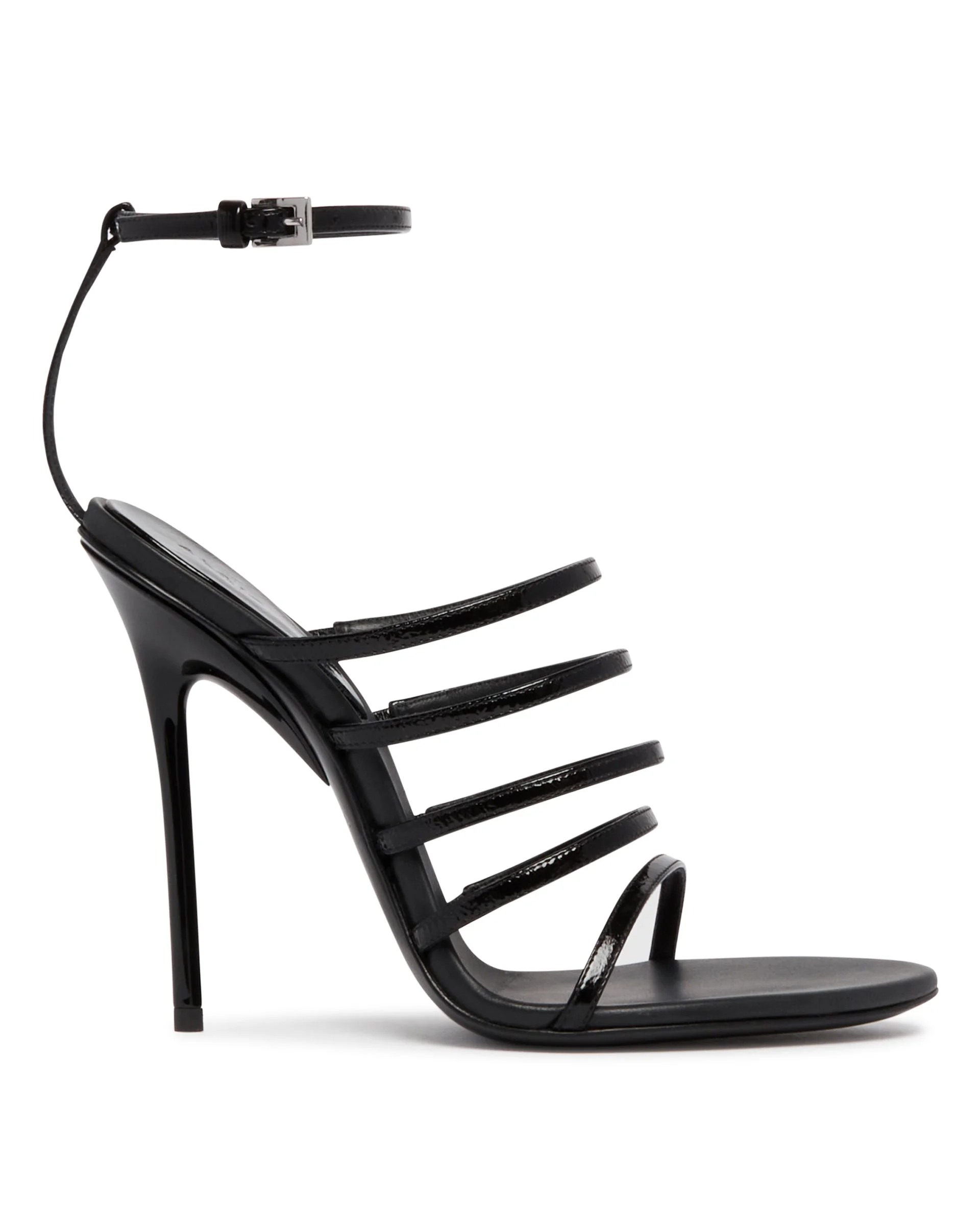 Alaia Black Leather Drop Sandals. Black leather upper with a glossy finish, thin straps and lacquered stiletto heel with a drop-shaped base. Adjustable ankle strap and leather sole. Heel Height: 11 cm DETAILS Model: AA3S2015I135999 Composition: 100% Leather Made in: ITALY Season: SS26