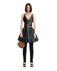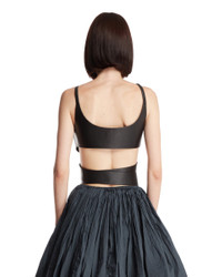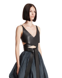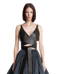 Alaia Black Leather Wrap Top. Black leather, sleeveless design, thin straps, deep neckline. Cropped cut, wrap-around design, regular fit. Alicia is 173 cm and she is wearing size 36. DETAILS Model: AA9H1263C228B995 Composition: 100% Leather Made in: ITALY Season: FW25-26