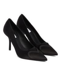 Alaia Black LeCoeur 3D Pumps. Black satin upper, pointed toe, iconic tone-on-tone 3D heart decoration at the front. High tone-on-tone heel, leather lining, leather sole. Heel Height: 9 cm DETAILS Model: AA3E089TK019999 Composition: 100% Fabric; Sole: 100% Leather Made in: ITALY Season: FW25-26