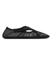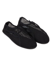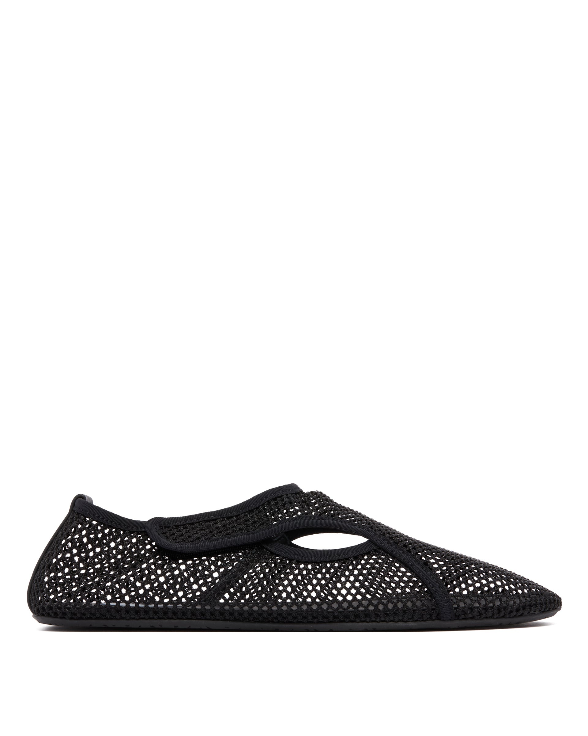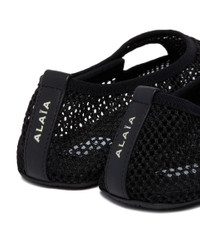 Alaia Black Mesh Slippers. Black mesh fabric upper, bare-foot effect, front closure with Velcro, vertical logo on the back, rubber sole. DETAILS Model: AA3A065TK050999 Composition: Upper: 100% Fabric; Sole: 100% Leather Made in: ITALY Season: FW25-26