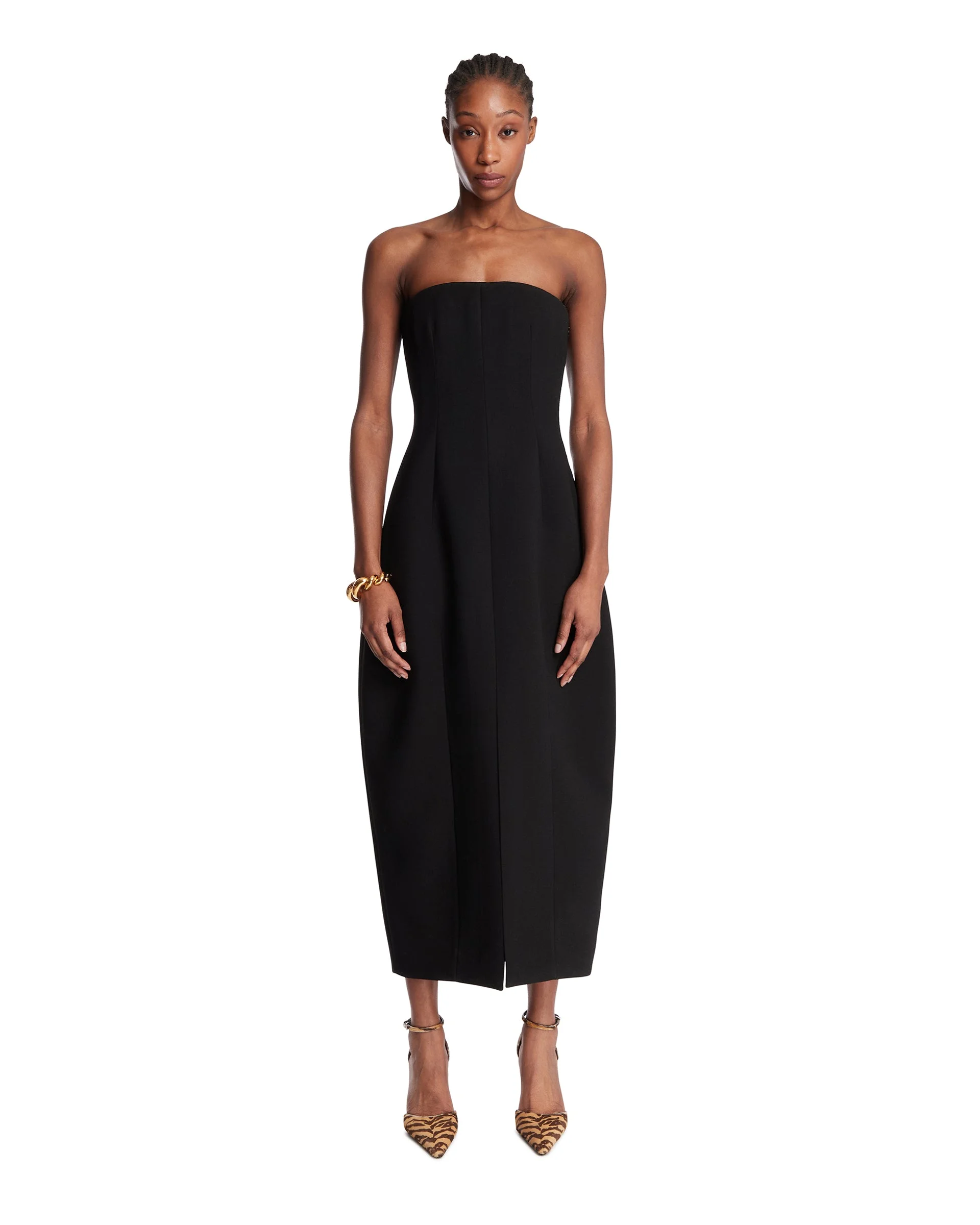 Alaia Black Rounded Wool Dress. Black textured wool-blend, long dress, sleeveless, rounded silhouette. Fitted bodice, cinched at the waist, invisible side zip closure, strapless. Regular fit. Vania is 179 cm and she is wearing size 36. DETAILS Model: AA9R2832W132C999 Composition: 94% Virgin Wool, 6% Polyamide Made in: ITALY Season: SS26
