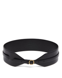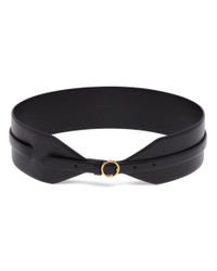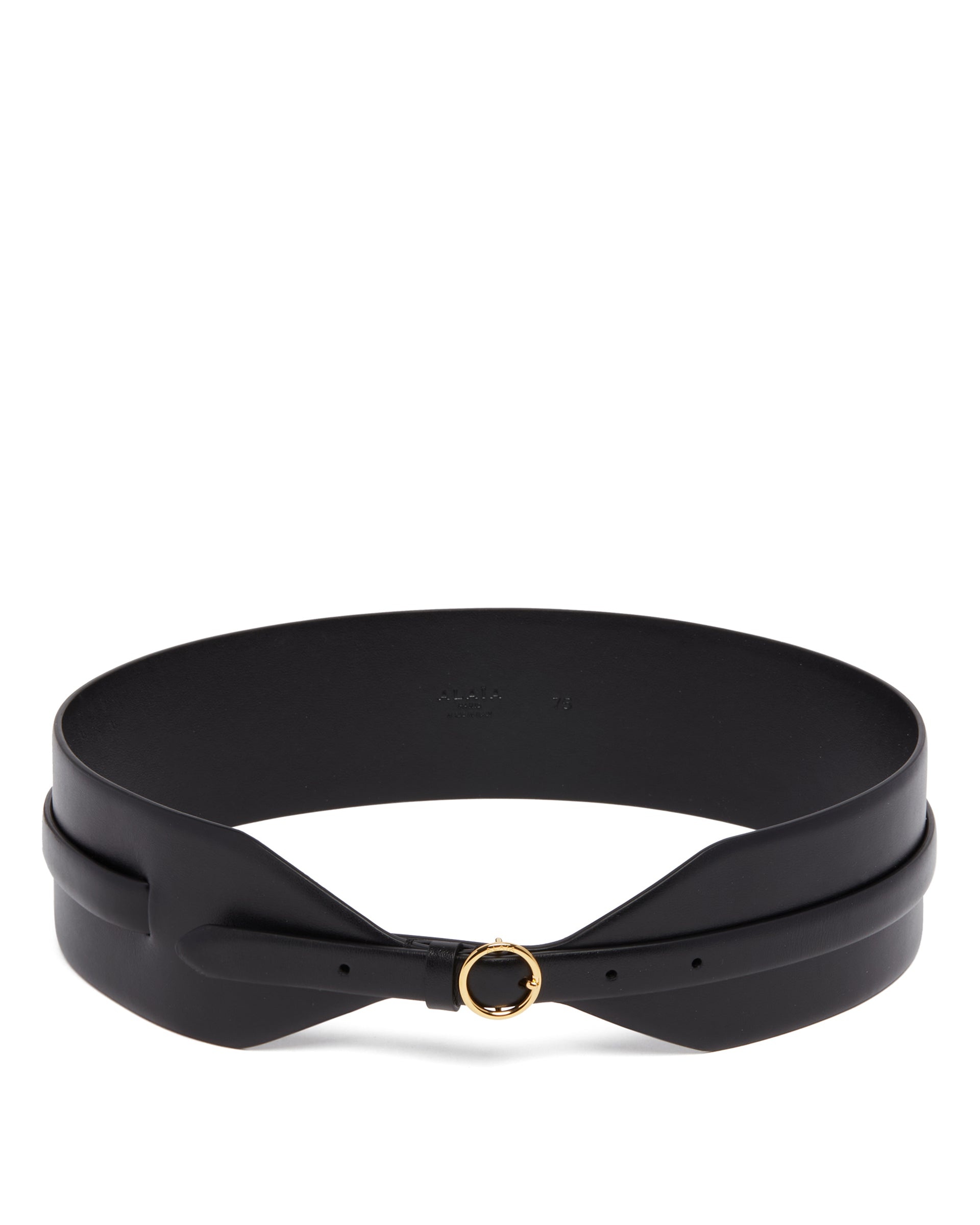 Alaia Black Wide Double Leather Belt. Black leather, wide belt with integrated thin belt, rounded metal buckle, gold-tone hardware. DETAILS Model: AA1C331MCA332999 Composition: 100% Leather; Detail: 100% Brass Made in: ITALY Season: FW25-26