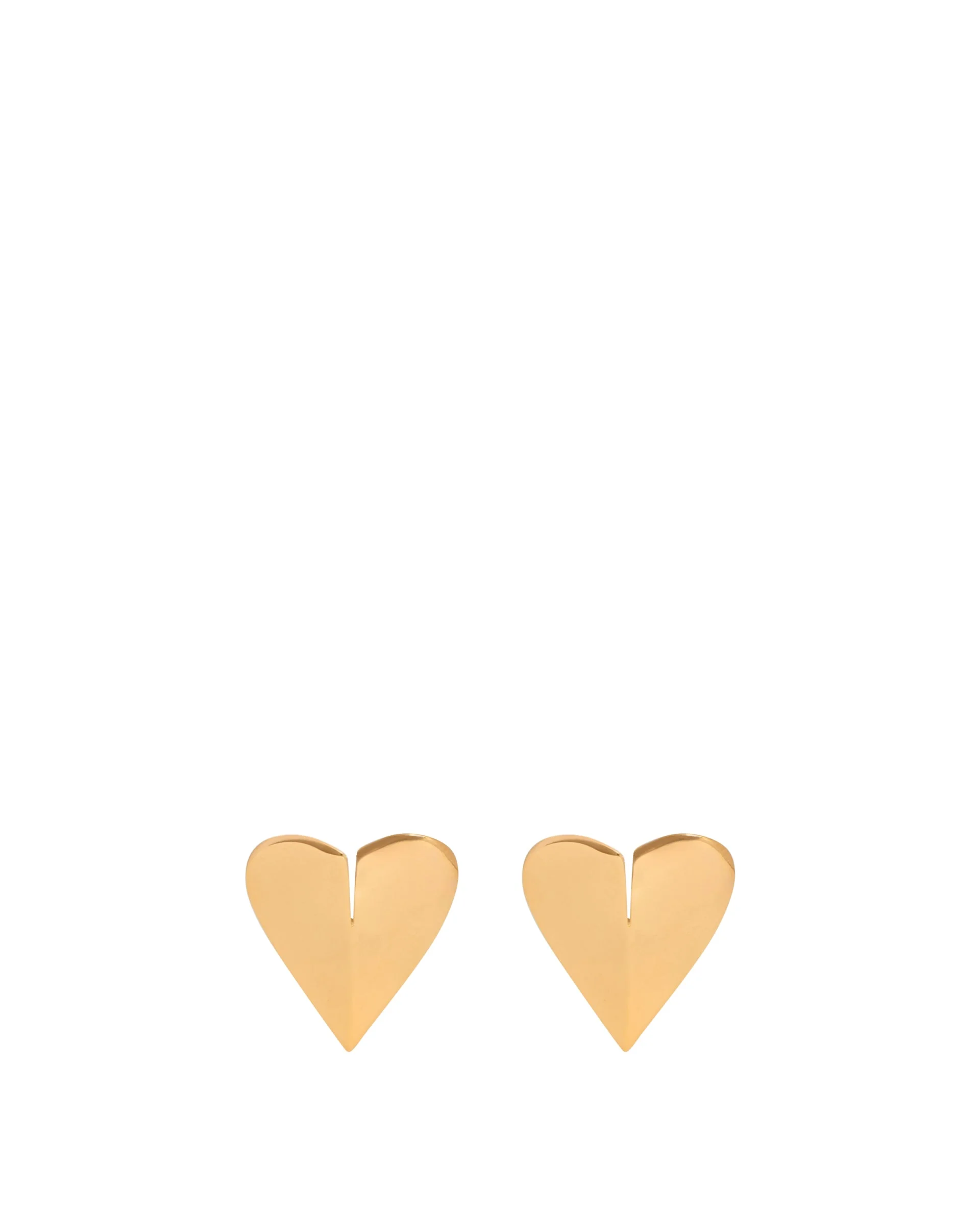 Alaia Golden-Finish Le Coeur Torn Earrings. Golden finish brass, heart-shaped design with a split in the center, engraved logo on the inside. For pierced ears. DETAILS Model: AA2B167LA006220 Composition: 100% Metal Made in: ITALY Season: SS25