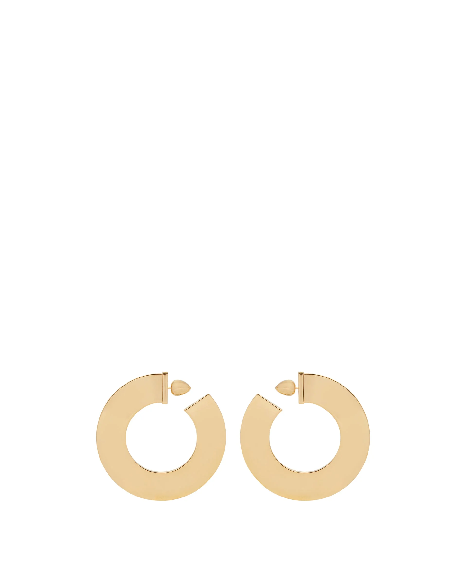 Alaia Golden Small Blade Hoop Earrings. Brass with a golden finish, spherical design, sharp edges, engraved logo. For pierced ears. DETAILS Model: AAJE1019E006220 Composition: 100% Brass Made in: ITALY Season: FW25-26