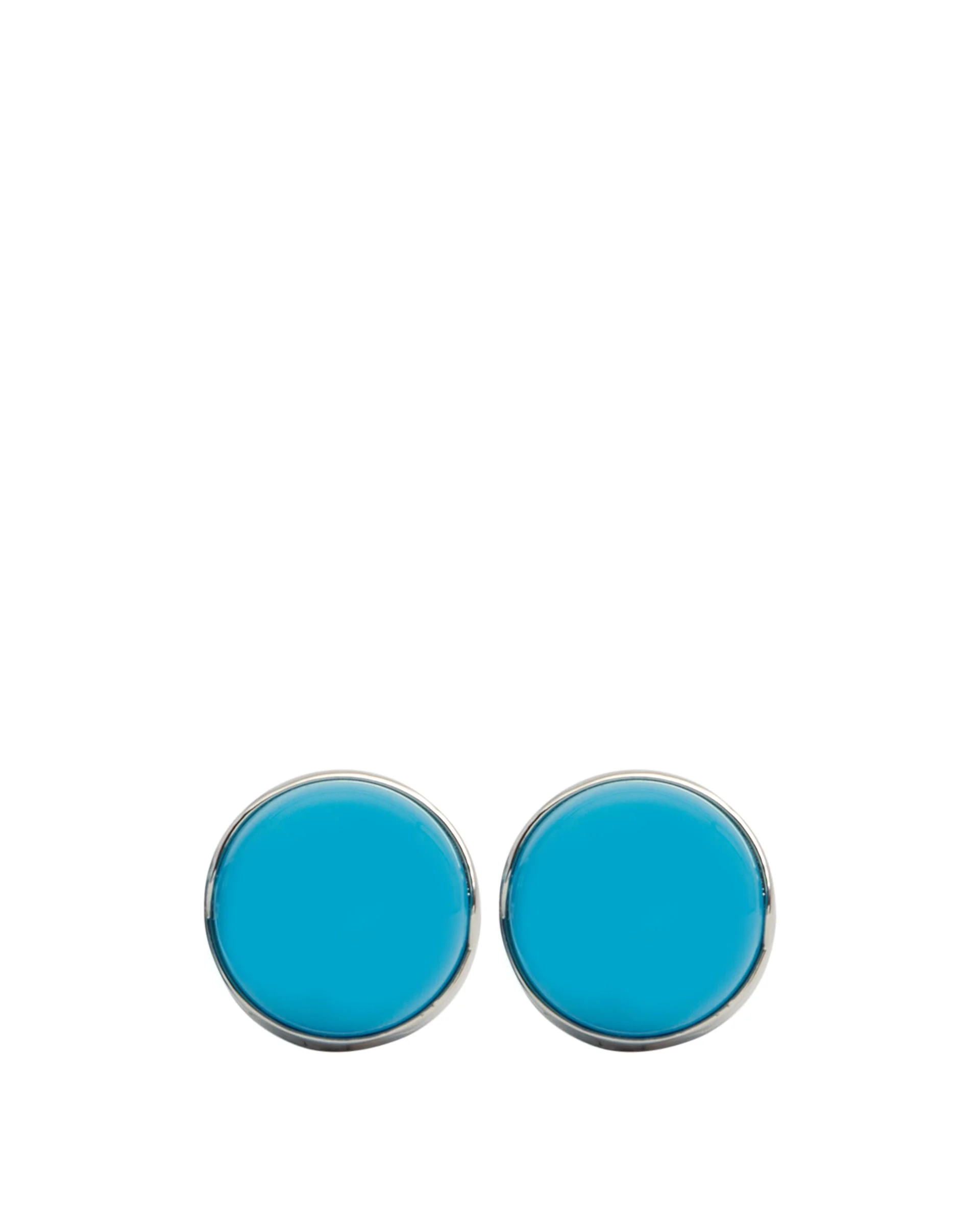 Alaia Light Blue Sphere Earrings. Brass with a silver finish, light blue enamel coating, snap closure, logo engraved on the inner side. For pierced ears. DETAILS Model: AAJB171E013556 Composition: 100% Brass; Detail: 100% Enamel Made in: ITALY Season: FW25-26