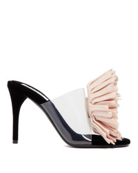 Alaia Pink Asymmetric Flower Sandals. Pink leather and transparent polyurethane upper, almond-shaped open toe, stiletto heel. 3D purple leather flower on one shoe. Heel Height: 9 cm DETAILS Model: AA3S2004I077416 Composition: 100% Fabric; Details: 50% Leather, 50% Polyurethane; Sole: 100% Leather Made in: ITALY Season: FW25-26