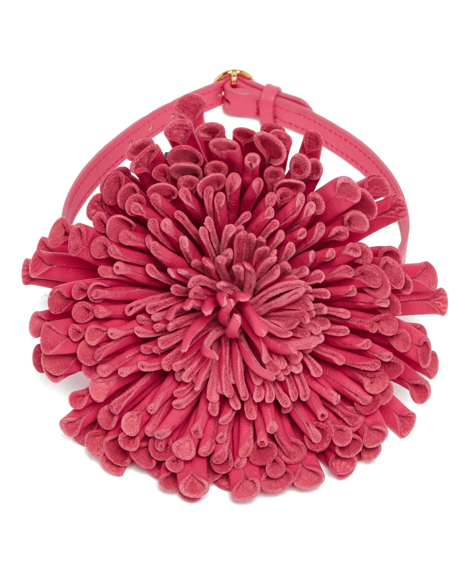 Alaia Pink Leather Flower Choker. Pink leather, adjustable leather strap and buckle, tone-on-tone 3D leather flower, gold-tone hardware. DETAILS Model: AA9A1051C228B424 Composition: 100% Leather; Detail: 100% Brass Made in: Madagascar Season: FW25-26
