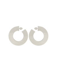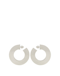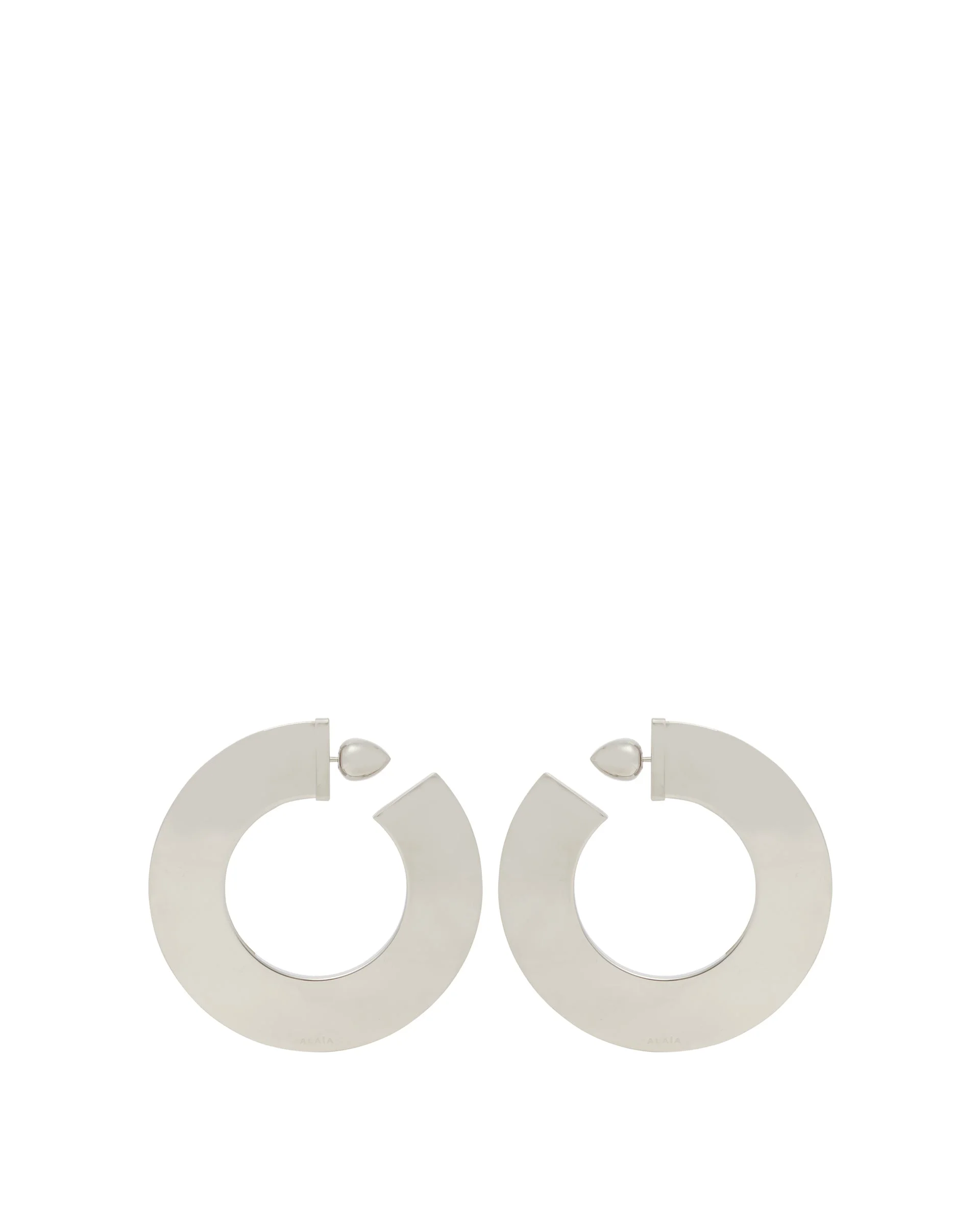 Alaia Silver Blade Hoop Earrings. Brass with a silver finish, spherical design, sharp edges, engraved logo. For pierced ears. DETAILS Model: AAJE1018E006210 Composition: 100% Brass Made in: ITALY Season: FW25-26