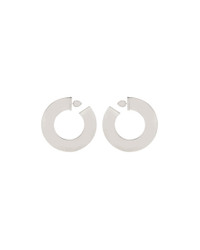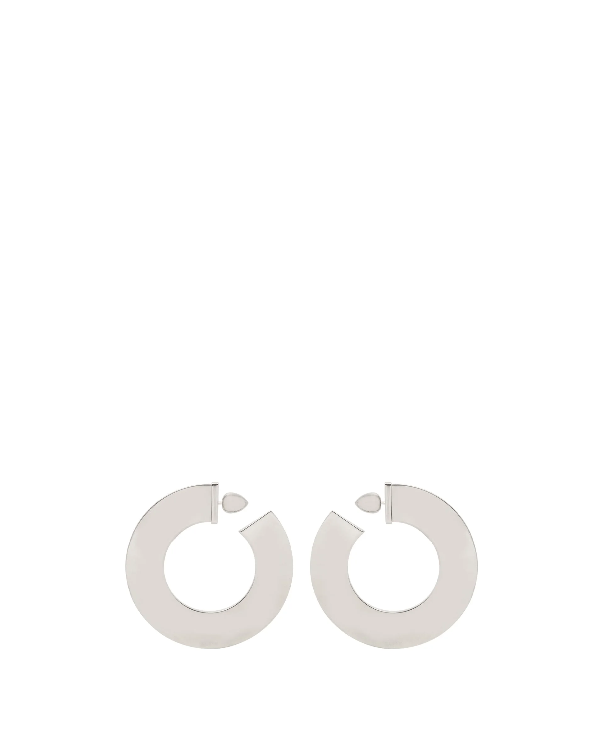 Alaia Silver Small Blade Hoop Earrings. Brass with a silver finish, spherical design, sharp edges, engraved logo. For pierced ears. DETAILS Model: AAJE1019E006210 Composition: 100% Brass Made in: ITALY Season: FW25-26