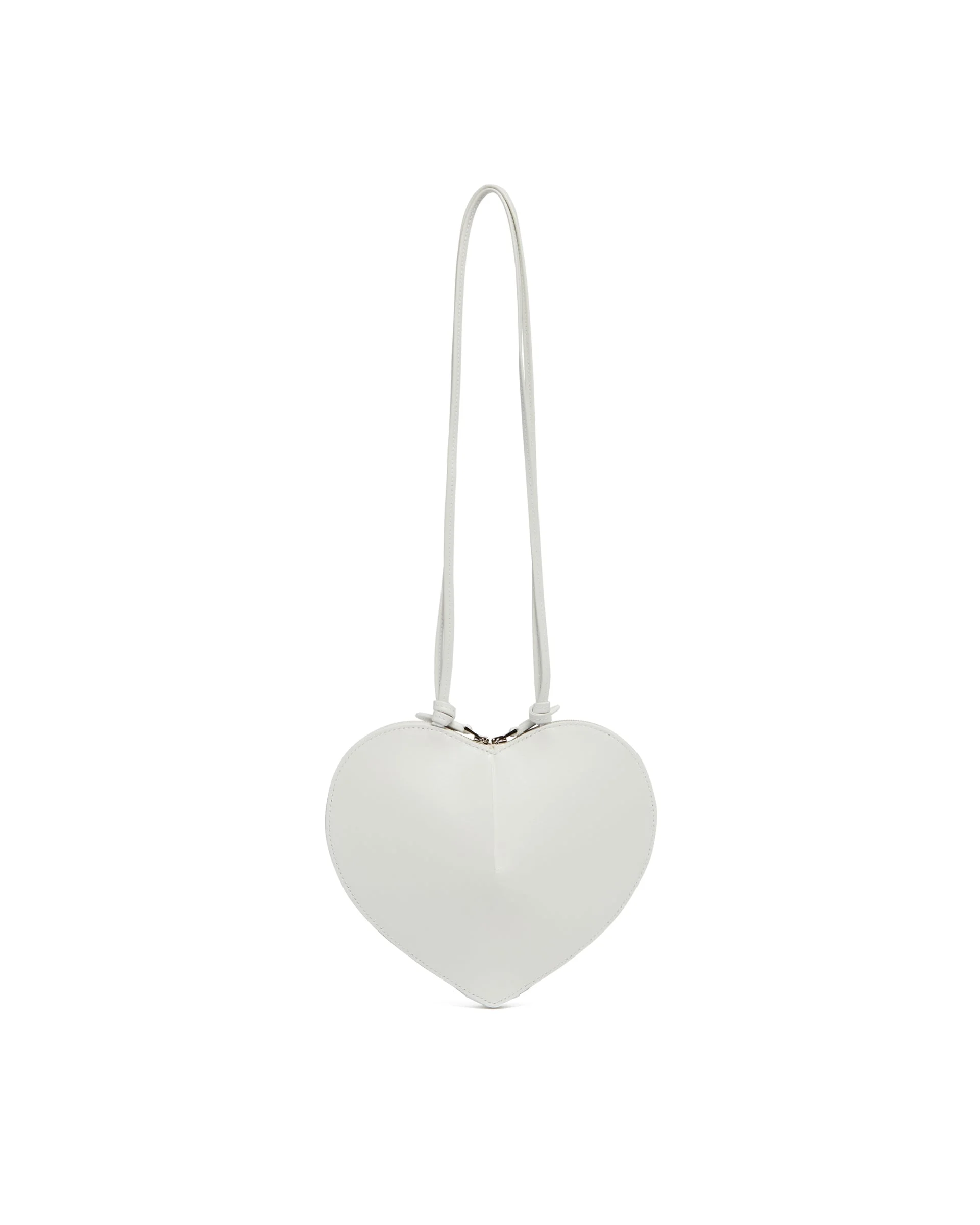 Alaia White Leather Coeur shoulder bag. White leather, heart shape, zip fastening, tonal adjustable leather shoulder strap, front logo in silver-tone. Fully lined. Silver-tone hardware. Size (cm): 20X16X3 DETAILS Model: AA1P003C0Y75010 Composition: 100% Leather Made in: ITALY Season: SS25