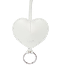 Alaia White Mini Coeur Keychain. White leather, signature heart shape, zip fastening, keyring and tonal adjustable strap. Logo details, fully lined. Size (cm): 8.5X6.5X0.5 DETAILS Model: AA1P044C0Y75010 Composition: 100% Leather; Detail: 100% Brass Made in: ITALY Season: SS24