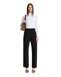 Alaia White Ribbed Bodysuit. White fitted viscose with ribbed texture, high collar, long sleeves, classic cut briefs. Fitted silhouette. Lea is 177 cm and she is wearing size 36. DETAILS Model: AA9B0330K017A000 Composition: 83% Viscose, 17% Polyester Made in: ITALY Season: SS25