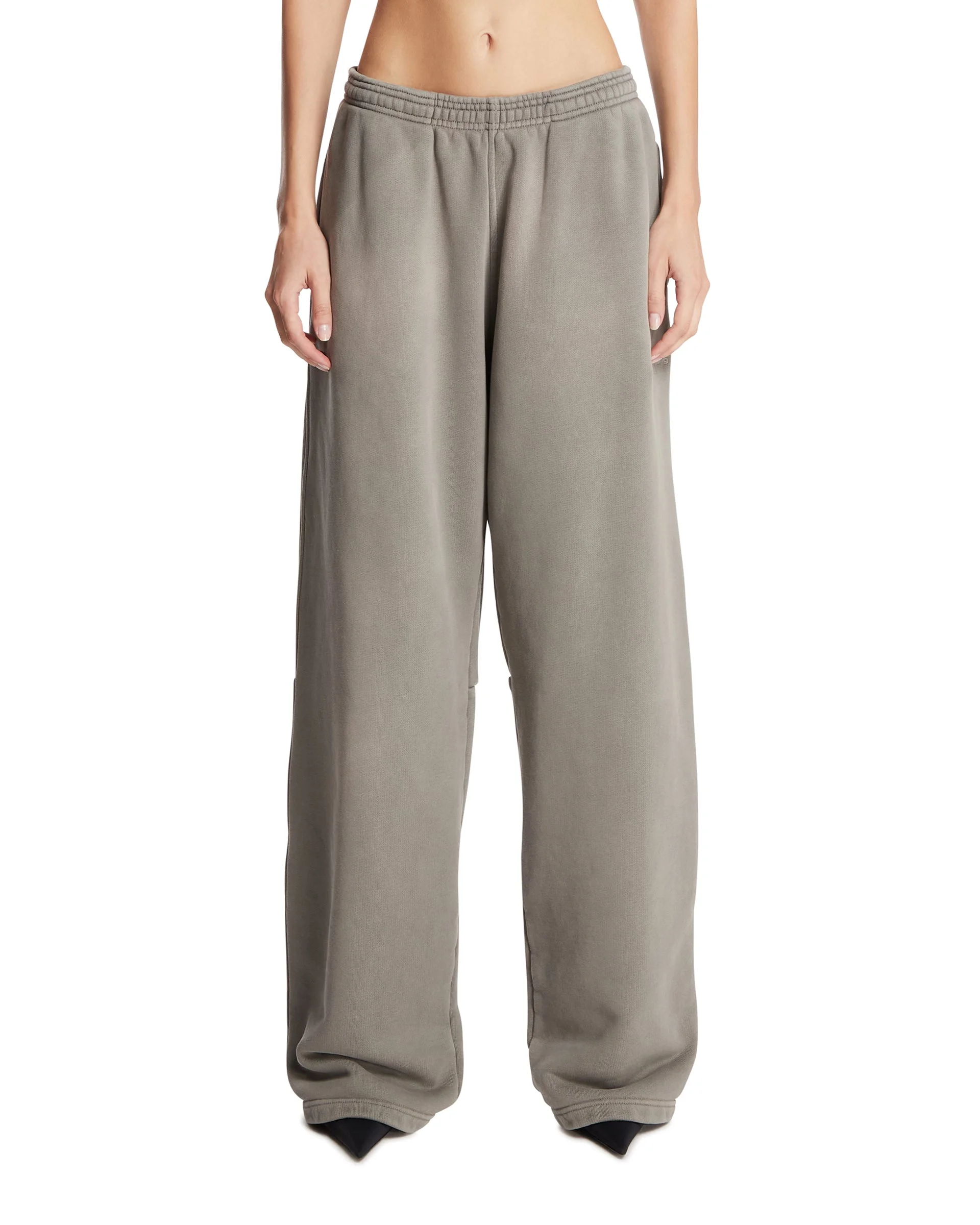 Alexander Wang Gray Wide-Leg Sweatpants. Gray cotton, elastic waistband, side pockets, wide leg design. Embroidered logo on the front panel, relaxed fit. Daniele is 178 cm and he is wearing size S. DETAILS Model: 1CC3254864064A Composition: 100% Cotton Made in: PORTUGAL Season: FW25-26