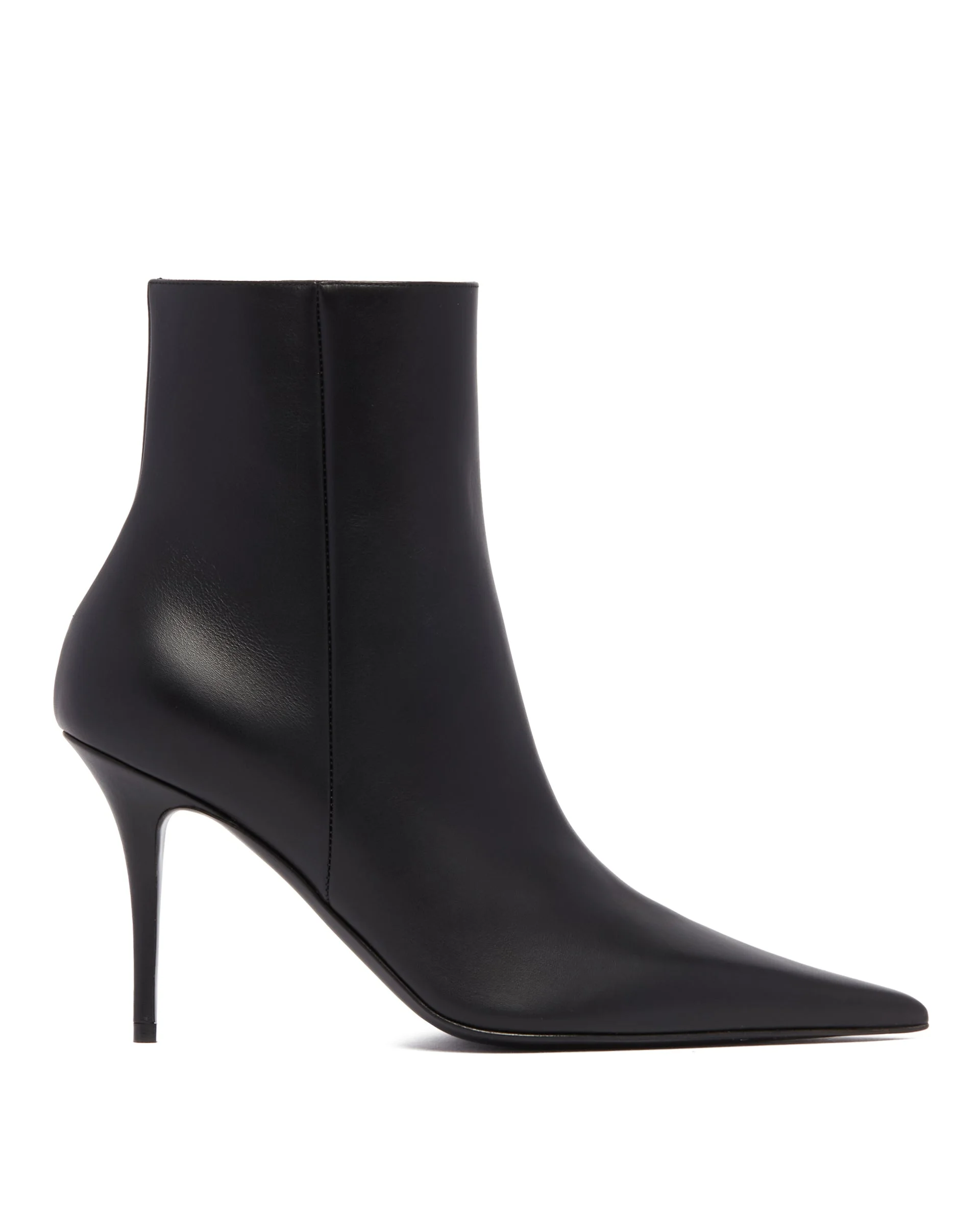 Amina Muaddi Black Barbara 90 Leather Ankle Boots. Black leather upper, pointed toe, zip closure on the inner side. Stiletto heel, leather sole, leather insole. Heel Height: 9 cm DETAILS Model: 13S361056BAR Composition: 100% Leather Made in: ITALY Season: FW25-26