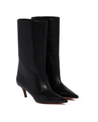 Amina Muaddi Black Fiona Leather Boots. Black leather upper, pointed toe, angled heel, leather lining and slip-on design. Heel Height: 6 cm DETAILS Model: C9S344030FIO Composition: 100% Leather Made in: ITALY Season: FW24-25