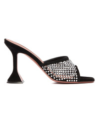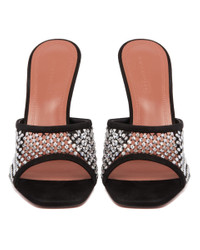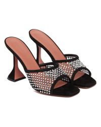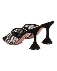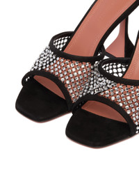 Amina Muaddi Black Lupita Net Mules with Crystals. Black mesh suede upper with crystals, open square toe, iconic tone-on-tone hourglass heel, leather sole, leather insole with logo, slip-on design. Heel Height: 9.5 cm DETAILS Model: 14S363775LUP Composition: 100% Leather; Detail: 100% Glass Made in: India Season: SS25