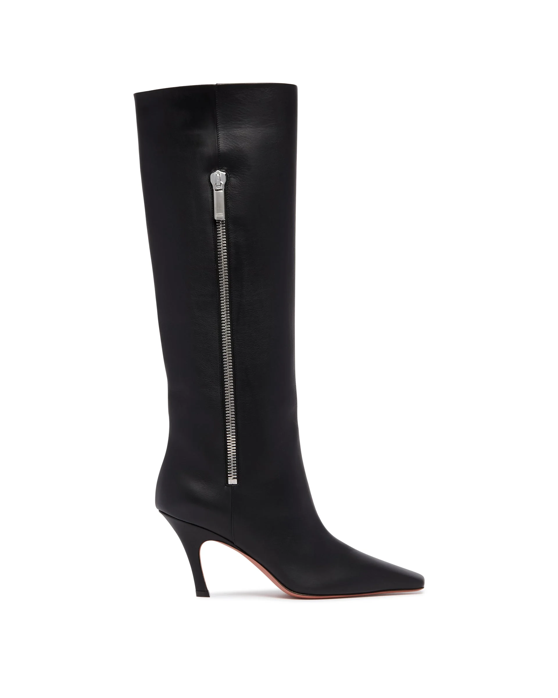Amina Muaddi Black Mona 80 Leather Boots. Black leather, squared pointed toe, external zipper closure, oblique heel, leather lining and insole, leather sole. Heel Height: 8 cm DETAILS Model: 15S365751MON Composition: 100% Leather Made in: ITALY Season: FW25-26