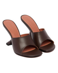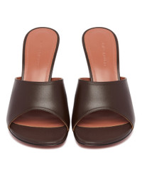 Amina Muaddi Brown Taylor Slipper Mules. Brown leather upper, open round toe, wide strap, open heel, sculptural heel, leather sole. Heel Height: 9 cm DETAILS Model: 14S364268TAY Composition: 100% Leather Made in: ITALY Season: SS25