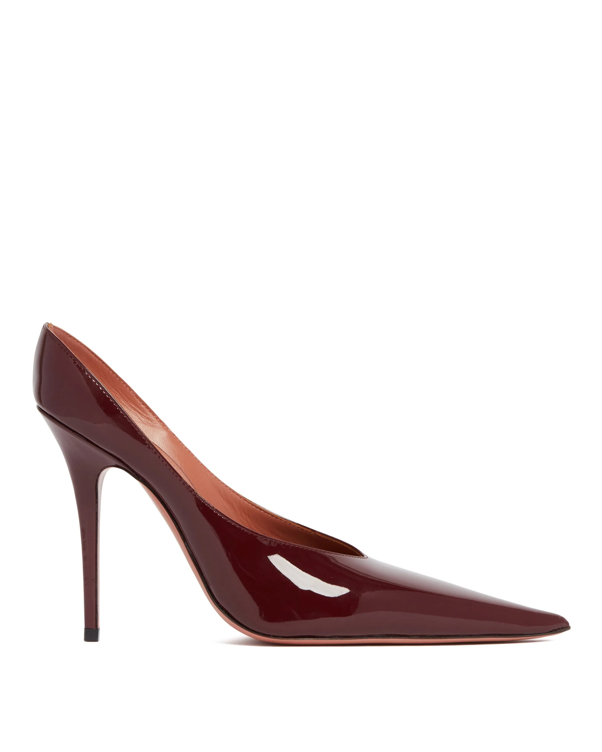 Amina Muaddi Burgundy Anok Leather Mules. Shiny burgundy leather upper, ultra-sharp pointed toe, leather sole, leather lining, high covered heel, slip-on fit. Heel Height: 10.5 cm DETAILS Model: 12S356932ANO Composition: 100% Leather Made in: ITALY Season: FW24-25