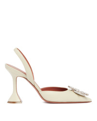 Amina Muaddi White Begum Leather Pumps. White leather upper, pointed toe, leather insole with logo, iconic hourglass heels. Embellished with Starburst brooch, slingback strap. Heel Height: 9.5 cm DETAILS Model: 15S365644BEG Composition: 100% Leather; Details: 70% Glass, 30% Brass Made in: ITALY Season: FW25-26