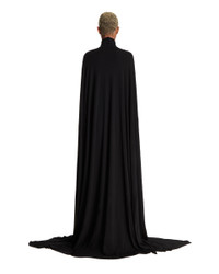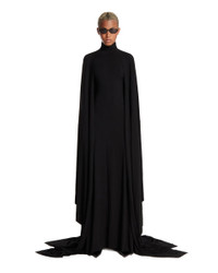 Balenciaga Black Long Cape Dress with High Neck. Black viscose blend, high collar, oversized fit. Asymmetric hem, cape silhouette. Carol is 178 cm and she is wearing size 36. DETAILS Model: 838789TRV231000 Composition: 92% Viscose, 8% Elastane Made in: ITALY Season: FW25-26