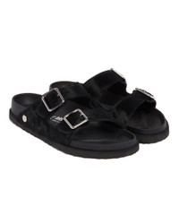 Birkenstock Black 1774 Arizona Slippers. Black pony hair upper, tonal leather-lined anatomical cork and latex footbed, iconic double strap with large buckles. EVA outsole, slip-on style. DETAILS Model: 1031763_BLACK Composition: 100% Leather; Details: 100% Brass; Sole: 100% Rubber Made in: GERMANY Season: FW25-26