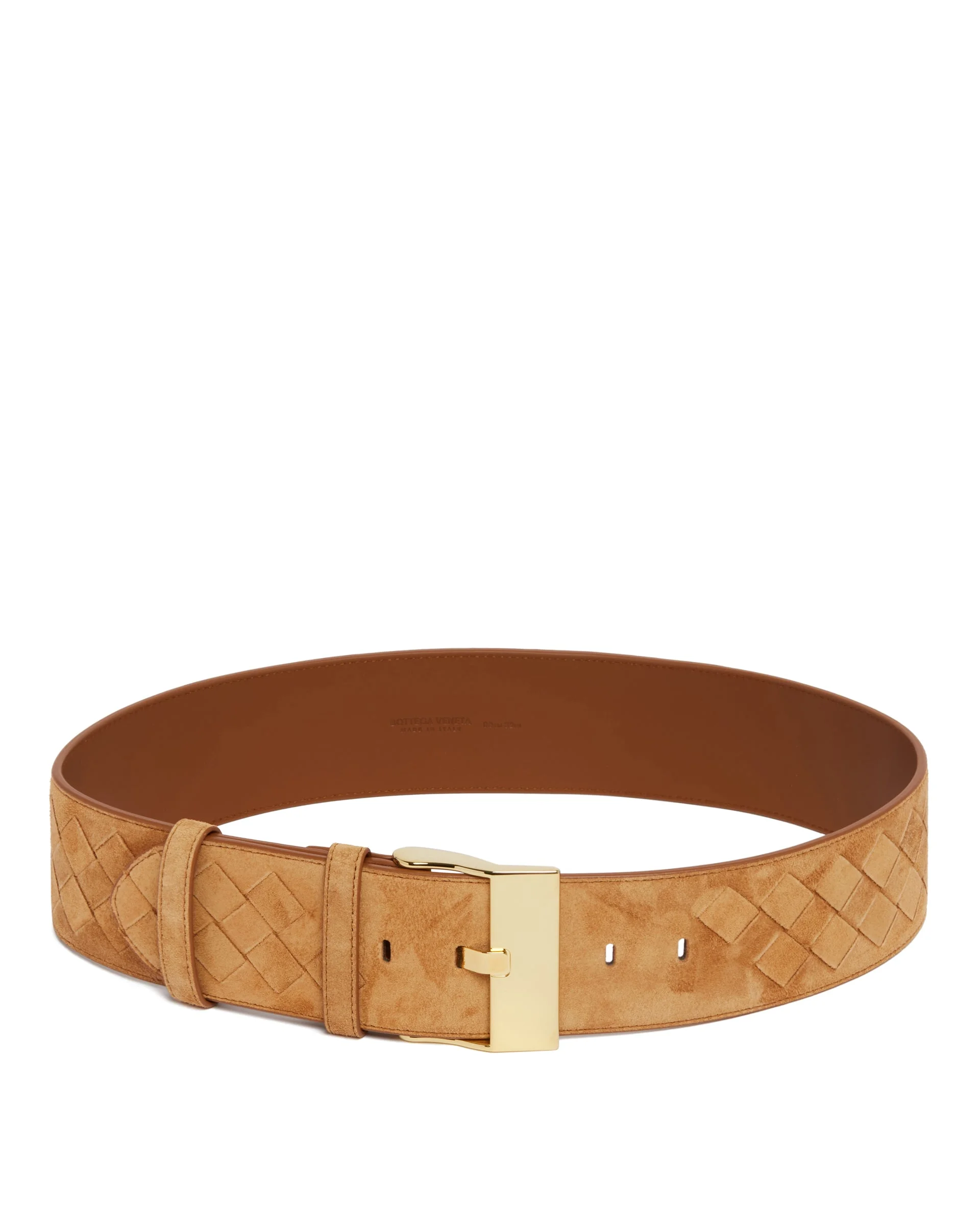 Bottega Veneta Beige Suede Large Watch Belt. Beige suede, intrecciato weave pattern, Watch buckle with brass finish. DETAILS Model: 844584V1QE12599 Composition: 100% Leather; Detail: Brass Made in: ITALY Season: FW25-26
