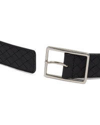 Bottega Veneta Black Intrecciato Belt. Crafted in pure black leather with iconic Intrecciato pattern. Adjustable, rectangular-shaped buckle with engraved logo, silver-toned brass hardware. DETAILS Model: 796783V4LQ18803 Composition: 100 % CALF SKIN Made in: Italy UE Season: FW24-25
